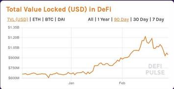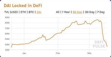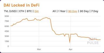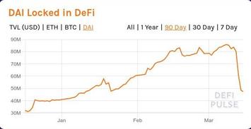 Далее рассмотрим хронологию перехода DeFi от зимнего хайпа к летнему. Хронология этого перехода представлена в виде серии слайд-шоу, отображающих динамику общей суммы заблокированных в DeFi средств, исчисляемых в USD, ETH и DAI (источник - сервис DefiPulse). DAI - это те самые фантики-"стейблкоины" DeFi-флагмана первой половины 2020 года MakerDAO, которые тот раздавал в обмен на "залог" криптовалюты, главным образом - на "залог" eth.