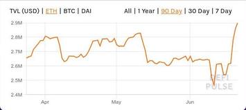 Последняя декада июня, "капитализация" DeFi в долларах пробивает февральский максимум, в ETH - приближается к февральскому максимуму, в